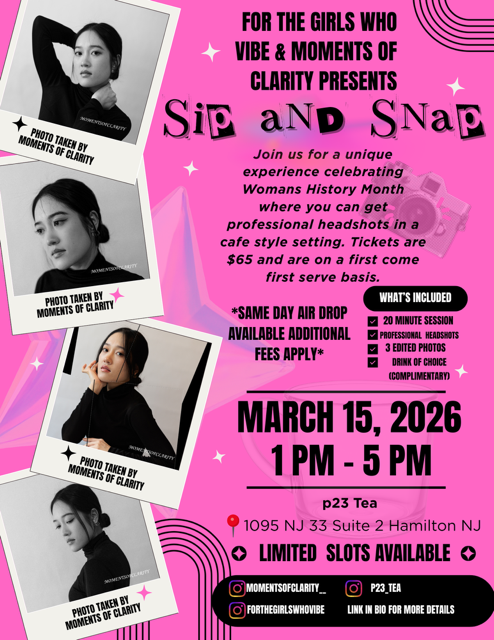 Come join us as we celebrate women’s history month with girly convos, refresh your headshot, and grab your favorite drink from P23 Tea.